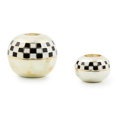 This set of two small silver-plated candle holders, featuring two rows of enameled checks and a laser-etched MC logo, is a chic way to add candles to your tablescape. They’re boxed for easy gift giving, too.