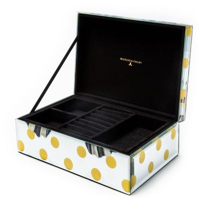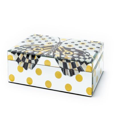 Make the dressing table pretty with our Spot On Butterfly Jewelry Box. Featuring a vivid butterfly design that’s digitally printed on glass and accented with a beveled edge, it’s perfect for holding jewelry and trinkets. The top tray removes for hidden storage.