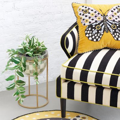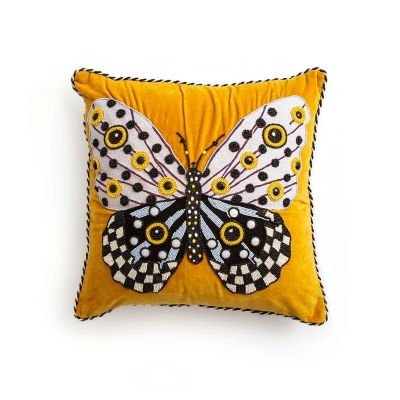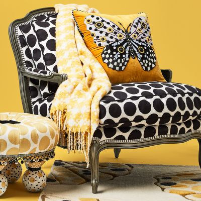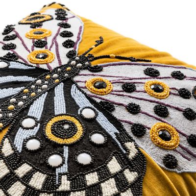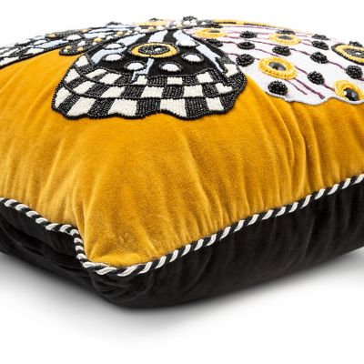 Take a flight of fantasy on our Spot On Butterfly Pillow. This winged wonder is embellished with embroidery and faceted beading on a cotton velvet front, trimmed with black and white twisted cording. A textural delight, it’s the perfect addition to our collection of Spot On and Queen Bee furniture collections.