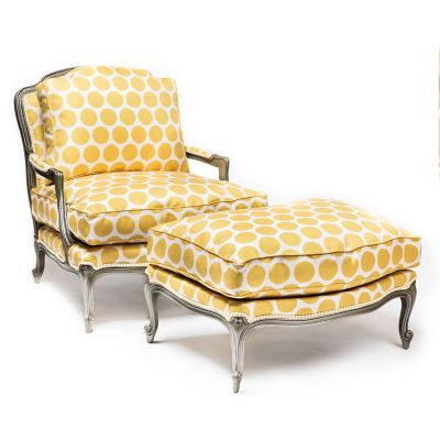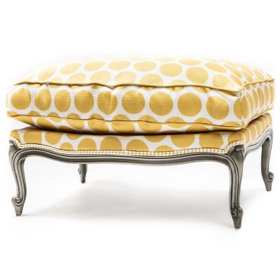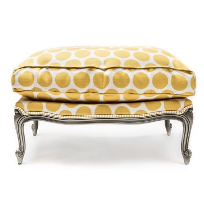 Our Buttercup Spot On Ottoman is just that—the perfect place to put your feet up, especially when paired with our Buttercup Spot On Chair. Featuring bold buttercup dots on a beechwood frame with hand-applied pewter finish, it’s trimmed with buttercup and ticking fabric welts.