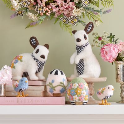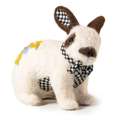 Spring ahead with this resting felted bunny. It’s embellished with hand-stitched, felted flowers and Courtly Check® on the ears, belly, and tail.