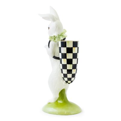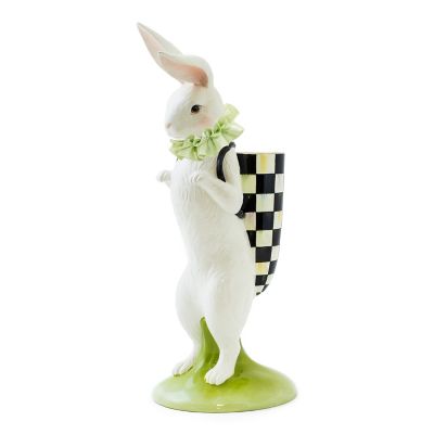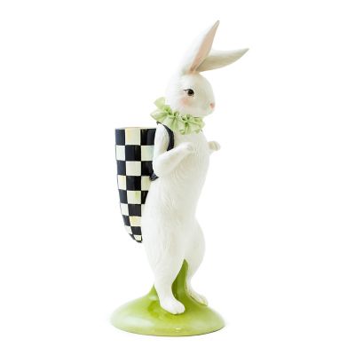 Spring ahead with this hand-painted standing hare, finished with a Courtly Check® backpack basket and a grosgrain ribbon collar.