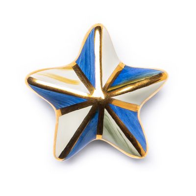 Make an ordinary dresser or cabinet a star with our Royal Star Knob. This petite ceramic silhouette features hand-painted Royal Stripes, trimmed with gold lustre. Mix and match it with our other smaller knobs, including the Courtly Check Star Knob and the Courtly Check Petit Four Round Knob for an eclectic look.
