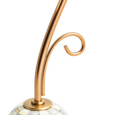 Our Sterling Check Desk Lamp takes task lighting to a new level of style. Our Sterling Checks are presented on a flared shade and base made of hand-painted enamel and trimmed with brass. Plus, the shade pivots for extra function.