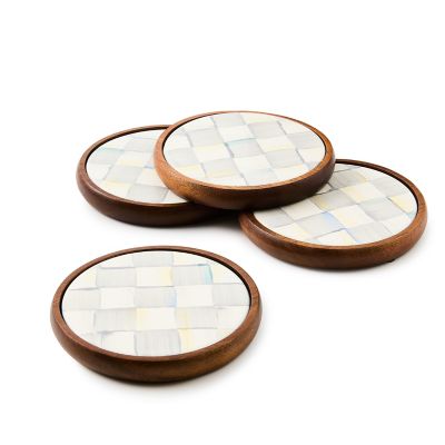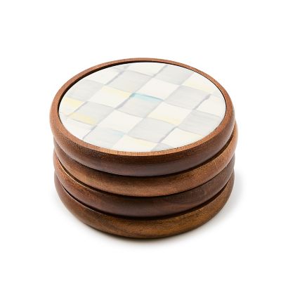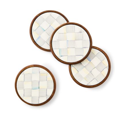 Keep surfaces clean and protected with our set of four Sterling Check® Enamel Coasters. They feature an acacia wood base and our popular hand-painted Sterling Check pattern on top of hand-glazed steel.
