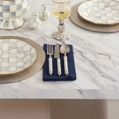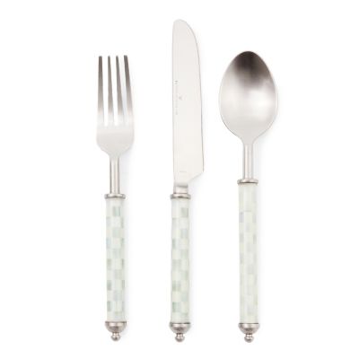 Take your tabletop to the next level with our Sterling Check® Supper Club 3-Piece Plate Setting. Made of stainless steel, the handles have a clear enameled coating bedecked in our signature grey checks. Each setting includes a dinner fork, spoon, and knife made to mix and match beautifully with all our enamel dinnerware.