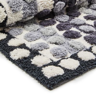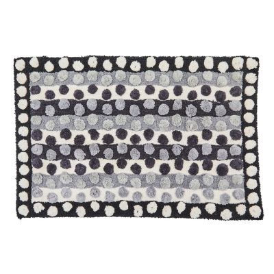 So soft underfoot, your feet will melt into the cozy texture of this black, white, and grey cotton-blend bath rug, which mixes a woven stripe pattern with raised dots.
