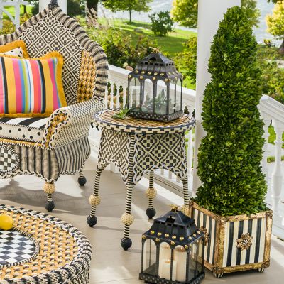 The preserved boxwood in our Swirl Topiary is intricately woven together, looking effortlessly elegant in its striped, gilded base. Choose a pair to flank your entryway for impressive curb appeal.
