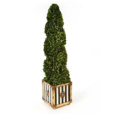The preserved boxwood in our Swirl Topiary is intricately woven together, looking effortlessly elegant in its striped, gilded base. Choose a pair to flank your entryway for impressive curb appeal.
