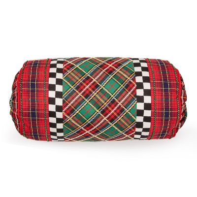 Add comfort and joy to your holiday home with this bolster pillow, featuring tartan and checks all around with a touch of bugle beads. The ends are finished with check-covered buttons and trimmed in red velvet piping.
