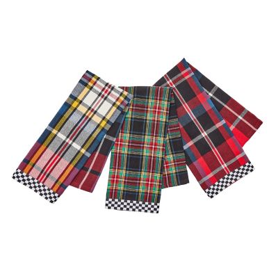 Fun and functional, this set of three dish towels features different tartan patterns of red and green, trimmed with Courtly Check®.