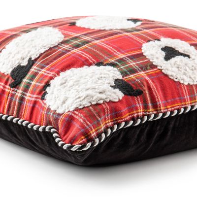 Of course, this pillow will have you counting sheep. It features nine chenille sheep with machine-embroidered faces and hooves on a backdrop of red tartan, trimmed with twisted black and white cording.