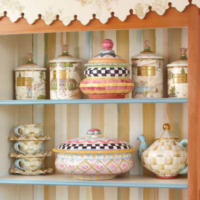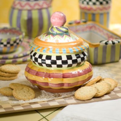 A patchwork of patterns delightfully mix-matched ensures all eyes will be drawn to our Odd Fellows Small Canister-and not just for the treats inside. Each handcrafted piece bears the stamps of the artisans who created it. Handcrafted and hand-painted majolica. Peek underneath to see the stamps of the artisans who created each unique piece. Coordinates with our Odd Fellows Globe and Column Canisters, and feels right at home in our Piccadilly collection too!