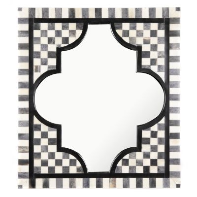 The Tigris Check Mirror reflects your style with a bone and resin check pattern, framing a quatrefoil mirror, trimmed in black. Pair it with the Tigris Rectangular Mirror for a bigger statement of style.