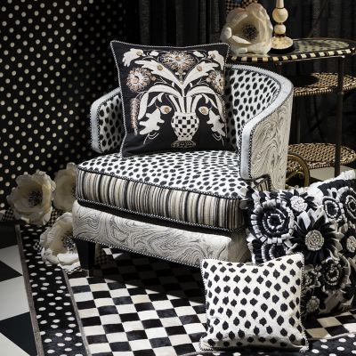 Spots go splashy on our Tomcat Pillow, created from sparkling black beads against a background of ivory cotton-rayon fabric. Finished with black and white check cording, it’s the perfect addition to our collection of Dotography furniture, which takes classic black and white beyond basic with glamorous details.
