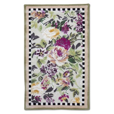 Fit for the crown but decidedly down to earth, our 3′ × 5′ Silver Fern Tudor Rose Rug is an English garden reverie. This wool blend rug is tufted and sculpted to give it a little dimension. It’s seeded with soft yellow, lilac, and blush tea roses blooming, all on a bed of celadon green and trimmed in our signature Courtly Checks®.