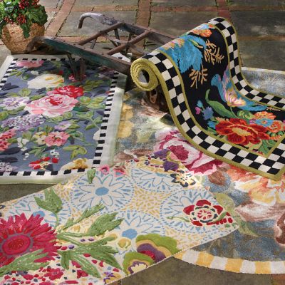 Fit for the crown but decidedly down to earth, our 3′ x 5′ Tudor Rose Rug is an English garden reverie. Pure, hand-tufted wool is seeded with soft yellow, blush, crimson, and violet tea roses blooming, all on a bed of dusky blue and trimmed in our signature Courtly Checks® and subdued pastels. A dreamy addition to the front hall or a sophisticated little girl’s bedroom.