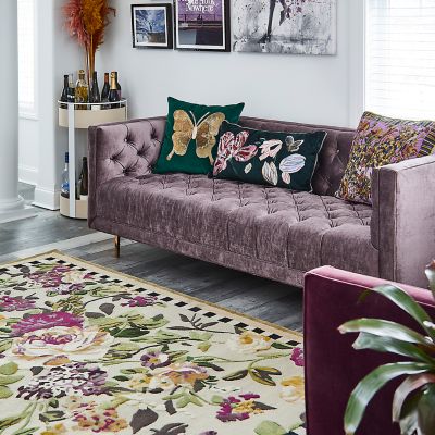 Fit for the crown but decidedly down to earth, our 5′ × 8′ Silver Fern Tudor Rose Rug is an English garden reverie. This wool blend rug is tufted and sculpted to give it a little dimension. It’s seeded with soft yellow, lilac, and blush tea roses blooming, all on a bed of celadon green and trimmed in our signature Courtly Checks®.