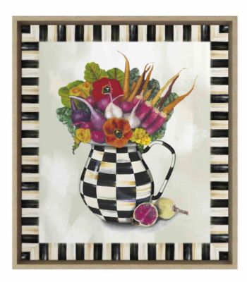 Add some wow to your walls with the Vegetable Bouquet Wall Art. This giclée image of our Courtly Check® Pitcher, filled to the brim with veggies and trimmed with Courtly Stripe, is created with high-quality inkjet printing on stretched canvas that’s embellished with hand-painting and mounted in a whitewash faux wood frame. Pair it with the Blooming Kettle Wall Art.