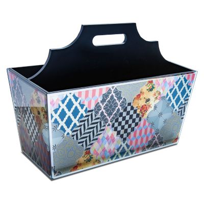Make any room stylish and more organized with our Venezia Magazine Rack. Perfect for holding magazines or important papers, it features a patchwork of iridescent patterns printed on mirrored glass, finished with beveled edges.