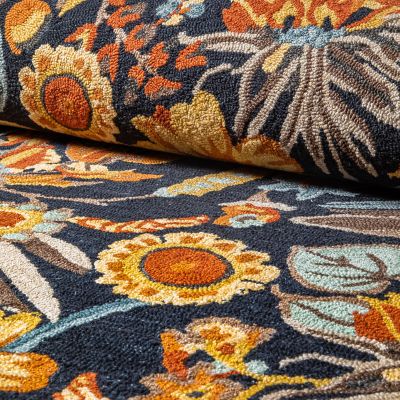 We’re endlessly inspired by the great outdoors, and the 8′ × 10′ Walk in the Woods Rug is a vibrant take on a woodland stroll. This hooked rug, made of 100% New Zealand wool, has lush leaves and florals that pop from the black background. It’s also partially space-dyed, a process that applies multiple colors along the length of each strand of yarn.