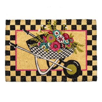 Extend always-in-bloom greetings before you even open the front door with this coir entrance mat, featuring flowers in a check wheelbarrow, trimmed with a checked border. This biodegradable mat is made of coconut husks and printed with water-based inks.