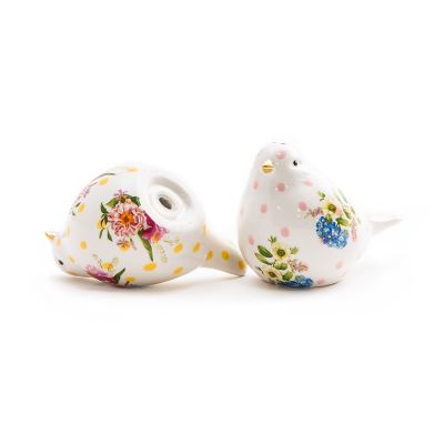 Make your table fresh and fun with the Wildflowers Bird Salt & Pepper Set, a pair of ceramic birds decorated with our pretty Wildflowers pattern of hand-applied transfers on hand-painted splots with touches of gold lustre. Presented in a beautiful gift box, it makes an ideal gift for the salt and pepper shaker collector, who might also happen to be your favorite host.