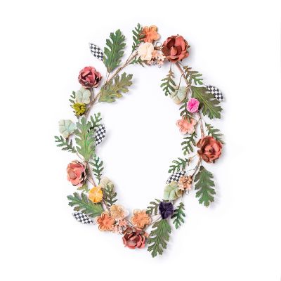 Add some whimsy to your walls with the Oval Wildflowers Wreath. This oval-shaped wreath is accented with dimensional painted metal flowers, velvet buds, and leaves of Courtly Check. Place it where you want your décor to blossom.