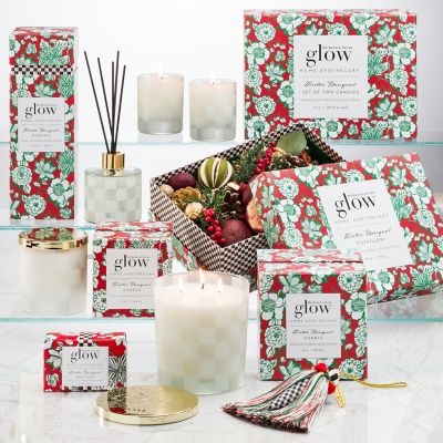 MacKenzie-Childs Glow Home Apothecary defines the essence of home with fresh and inviting scents. Be enlightened by our 8-ounce Winter Bouquet Candle, a blend of palm and paraffin waxes, that burns up to 50 hours. The scent is fresh and clean, evoking a forest in bloom, featuring fresh-cut fir trees melding with the warm embers of spicy cloves.