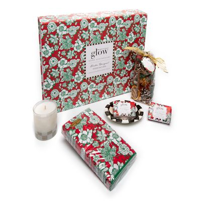 Enjoy our Winter Bouquet fragrance, which evokes a forest in bloom, featuring fresh-cut fir trees melding with the warm embers of spicy cloves, with our Winter Bouquet Essentials Box. This beautiful box makes an ideal gift and includes a 5-oz. Winter Bouquet Candle, two small 3.7-oz Winter Bouquet Guest Soaps, Winter Bouquet Paper Guest Towels, a Small Winter Bouquet Potpourri, and a Courtly Check Enamel Soap Dish.