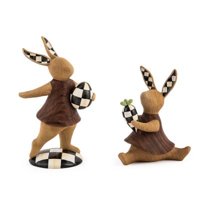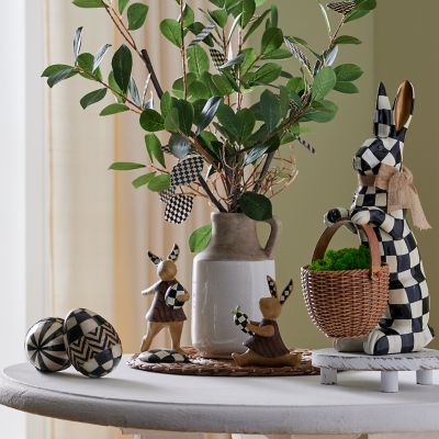 Discover the beauty of natural and neutral with this wood-finish rabbit holding a Courtly Check® egg that’s decorated with more checks on its ears.
