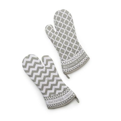 Handy in a hot spot, our set of two Sterling Zig Zag Oven Mitts protect your hands from piping-hot pots and pans. Featuring crisp and cheerful grey and white patterns, as well as our fetching logo, they’ll look lovely hanging from a hook in your kitchen (who could bear to keep this pretty pair stashed away in a drawer?)