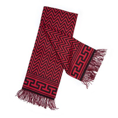 Add a little luxury to any room with our cozy Black & Red Zig Zag Throw. Its woven chevron pattern, accented on the ends with a Greek key design, is finished with soft twisted fringe.